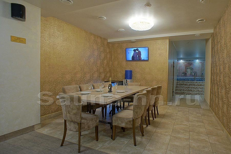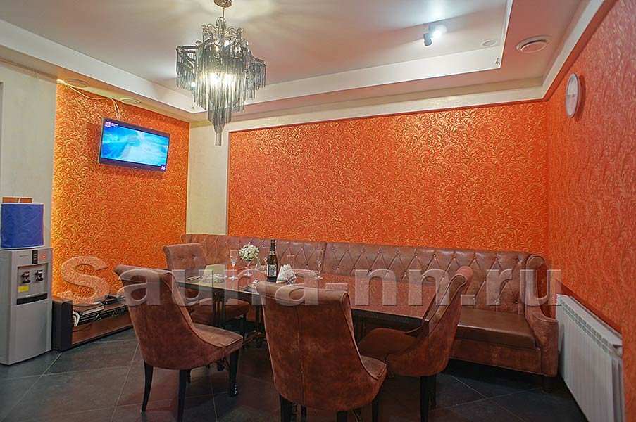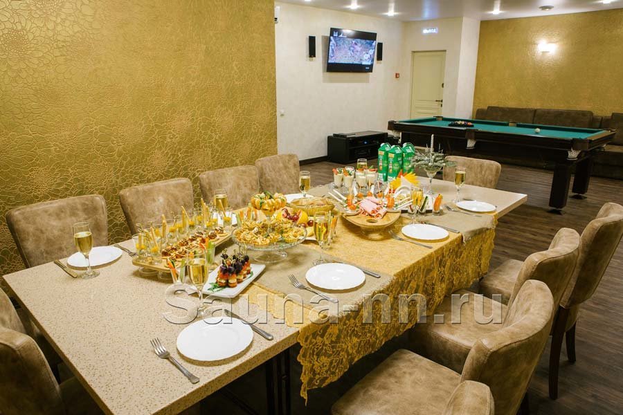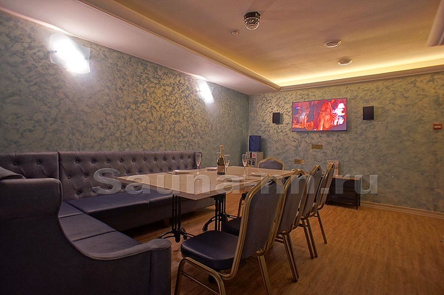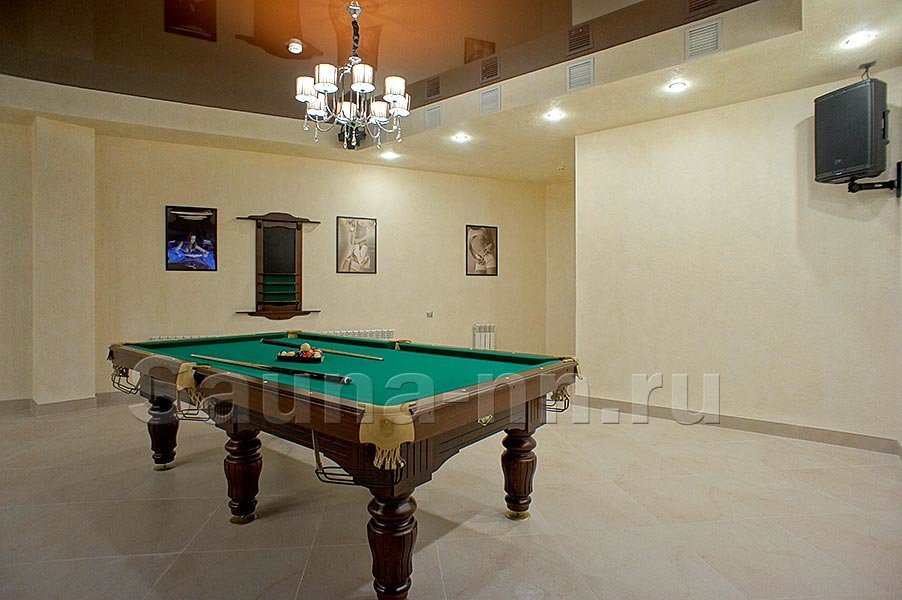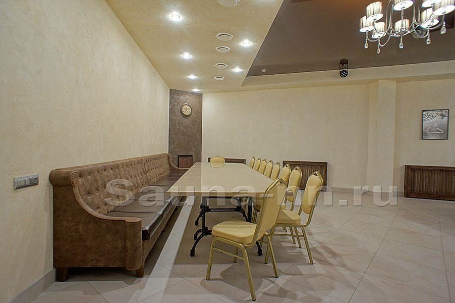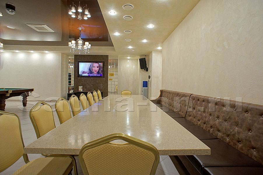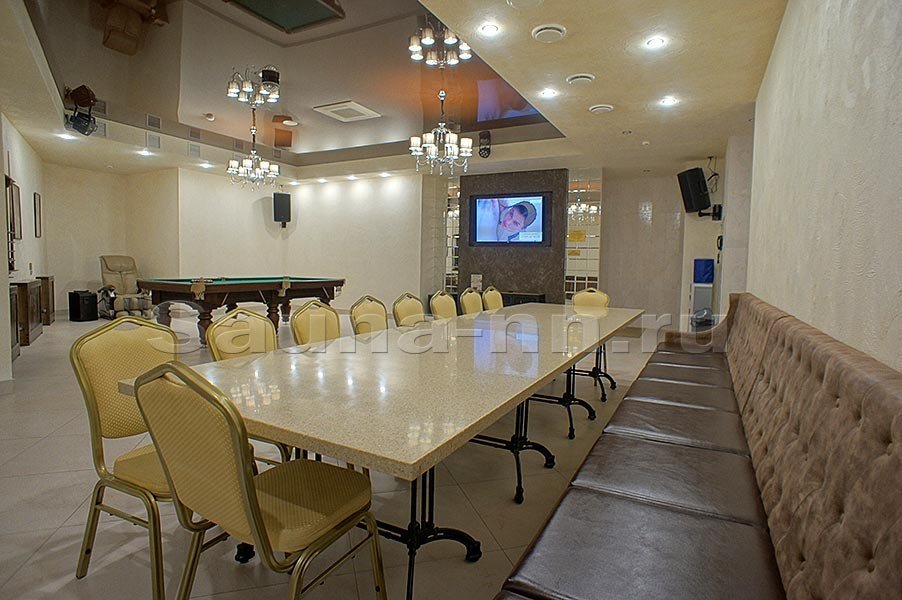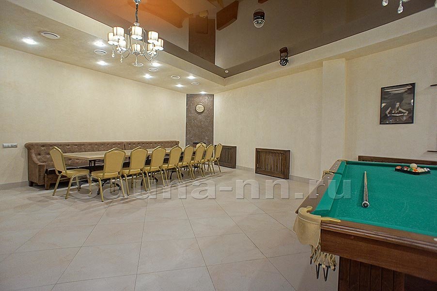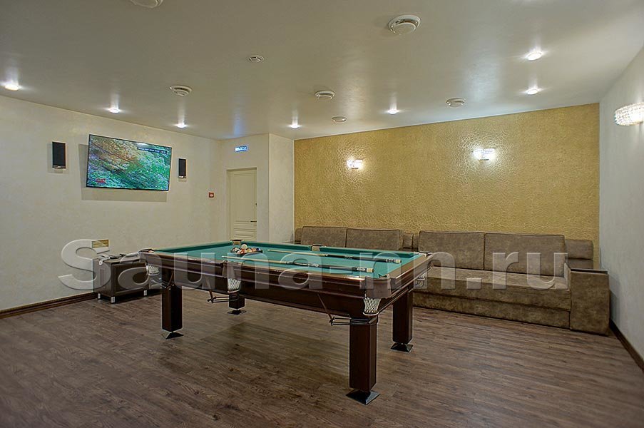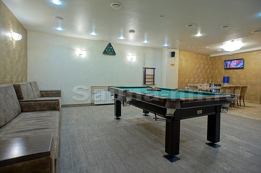 Не хочется в бассейн? Не беда! Вместо этого можно передохнуть в нашей комнате отдыха. Мы ставили своей целью создать здесь уютный, практичный интерьер из преимущественно натуральных, безопасных материалов, подобрать мебель, которая будет в равной степени удобной и красивой. Надеемся, что вам понравится! Для поддержания атмосферы отдыха мы можем предложить вам бильярд и караоке. Также у нас имеется бар, а при необходимости вы можете прийти и со своей едой - мы не возражаем! Главное помните, что плотная трапеза незадолго перед посещением парной - это не самая удачная идея, по мнению докторов. А вот после парной она совсем не повредит!